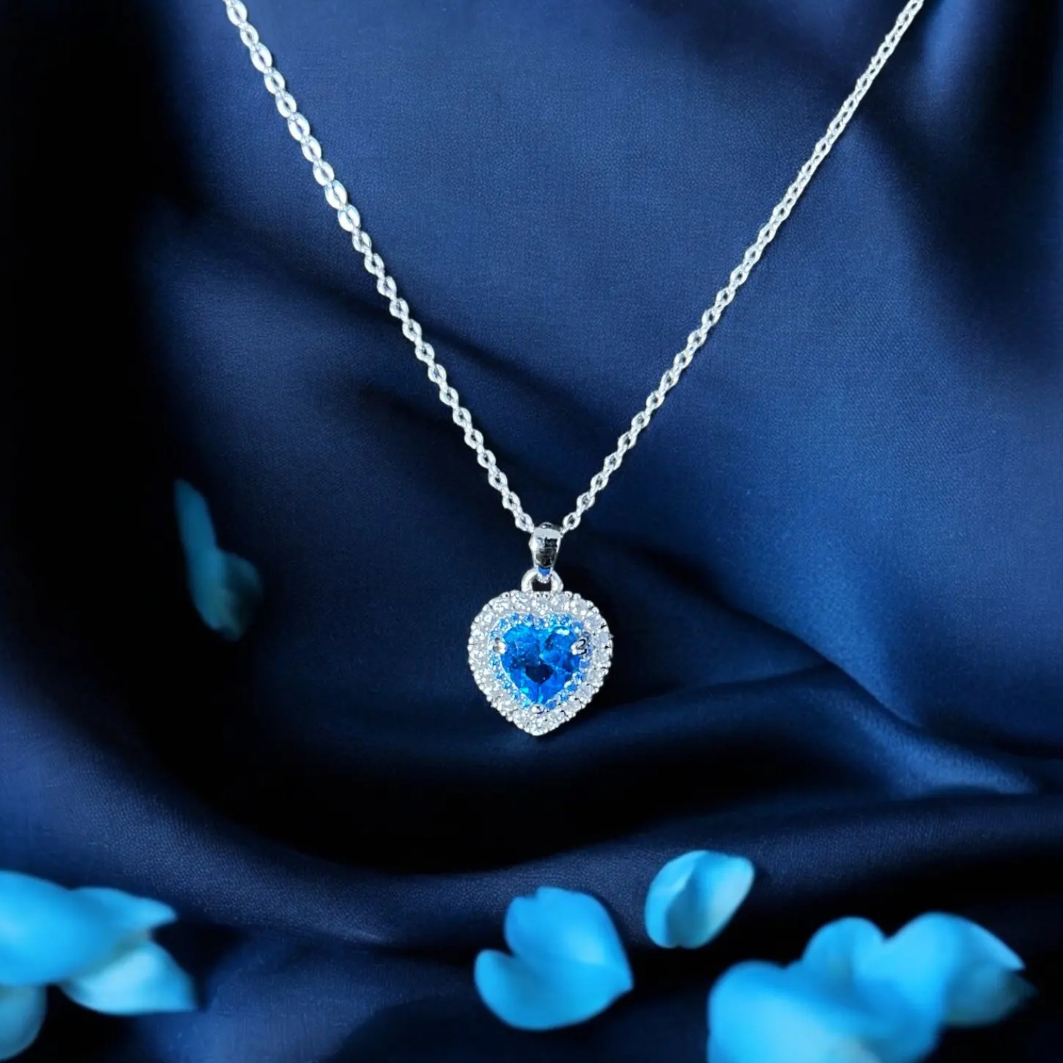 Radiating icy elegance, the Frost Heart Pendant features a brilliant blue heart-shaped stone framed by shimmering crystals. Crafted in pure silver, it’s the perfect blend of sparkle and sentiment—made to celebrate love, beauty, and grace.