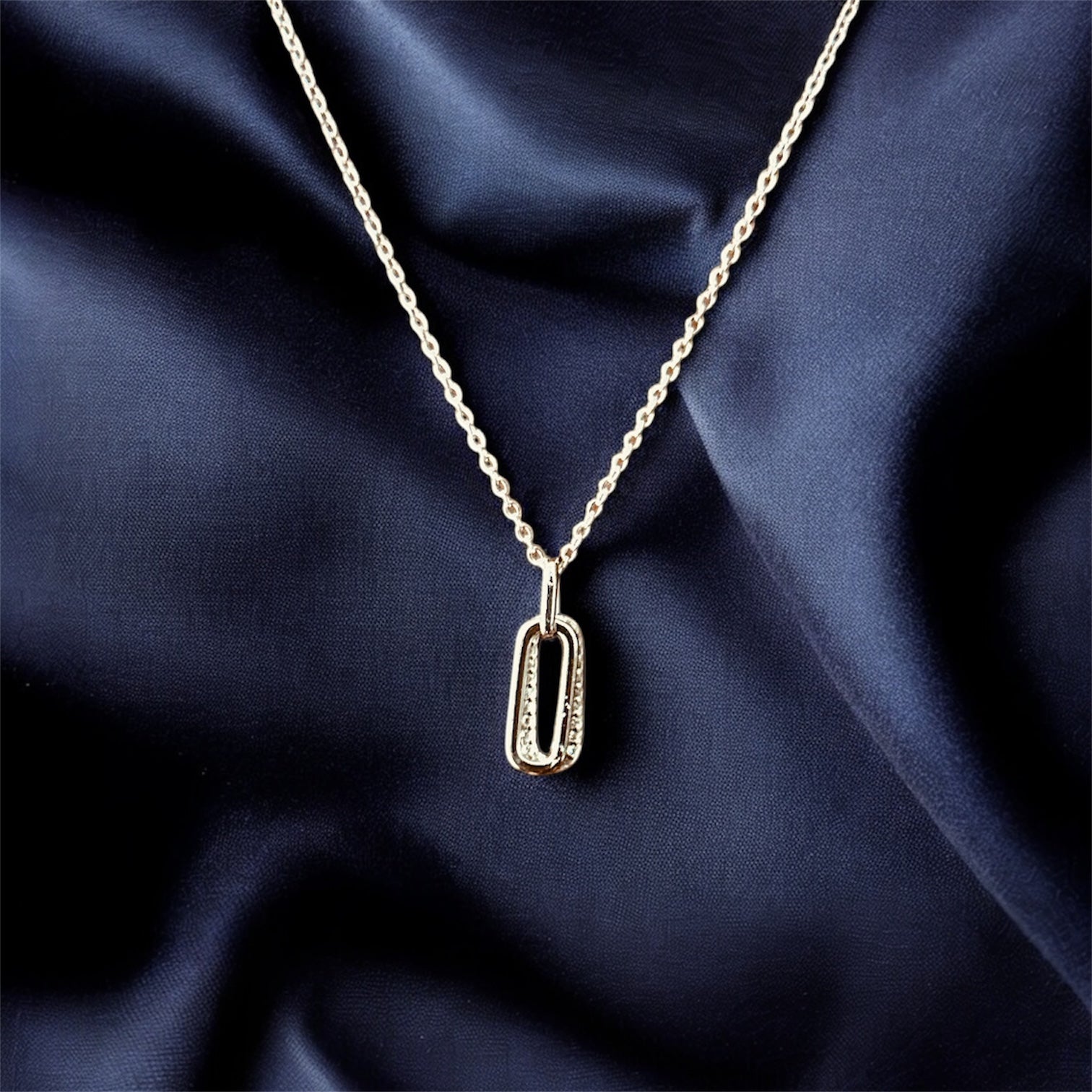 A sleek, modern silver pendant symbolizing unbreakable bonds. Its dual-loop design reflects connection, love, and strength—perfect for everyday elegance or gifting someone who anchors your heart.