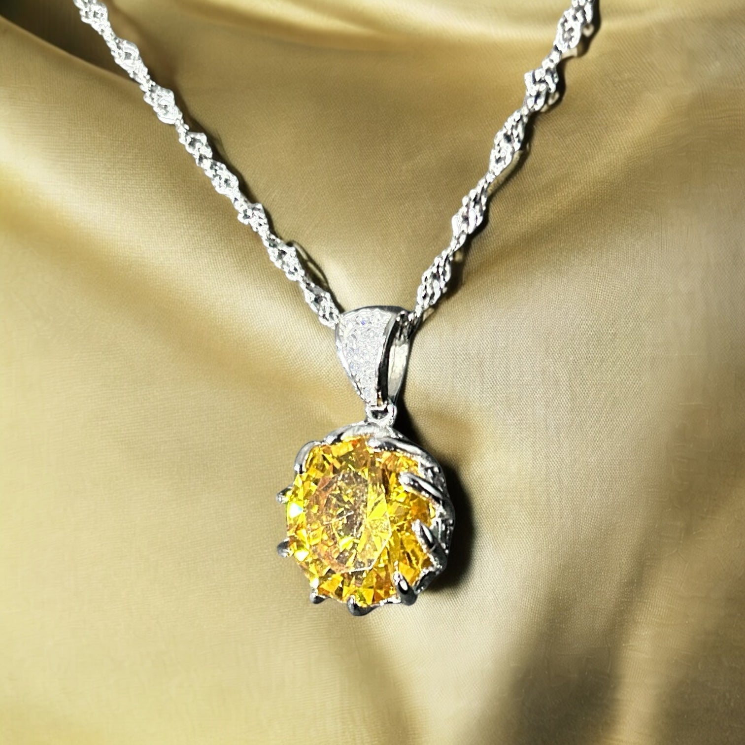 Brighten every moment with the Sun Pendant—featuring a radiant yellow gemstone set in pure silver. Inspired by sunlight and joy, it’s a bold and beautiful piece that brings warmth, energy, and elegance to your look.